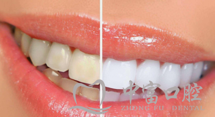 贴面:此法是在牙齿外表面贴上一层和正常牙齿颜色相近的材料,遮住牙齿自身的颜色,立刻就能看到,牙齿立即变白,费用相对比较低。贴面选用的有树脂材料,瓷性材料。树脂材料容易着色,缓慢会被食物染色,通常几年时间需要更换。瓷性材料比较脆,受力大时易崩瓷。