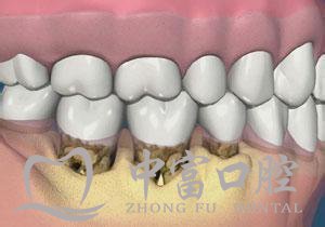 很多牙周炎患者的牙周炎发展到一定程度才引起重视。中富口腔提醒大家如果发展到重度牙周炎时,牙根分叉病变、牙髓病变、牙松动甚至脱落就会随之而来。因此,牙周炎重点应该早预防、早治疗。