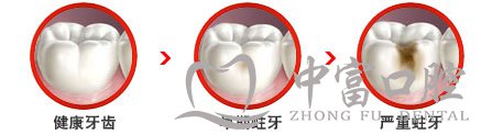 在牙齿咬合面的沟裂里,早期的蛀牙表现为黑色的损伤,用口腔科的探针进行检查时,损坏的地方能够把探针勾住,说明已经产生了沟洞。对于这种早期的牙釉质蛀牙,一旦发现,不能因为没有痛苦就加以忽视,而应该作早期处理,阻止它继续发展。这种疾病的进展是非常缓慢的,在其缓慢病变的过程中,有相当一段时间不会引起什么症状,往往不容易被人们察觉,因此得不到早期治疗。