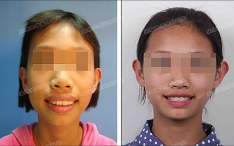 雯雯牙齿矫正前后正脸对比