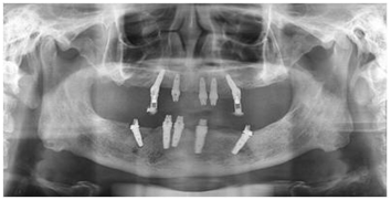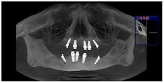 宁德中富口腔种植科医生对李大爷的口腔情况进行系统检查后,诊断李大爷为重度牙周病导致全口牙齿缺失。由于李大爷牙齿缺失时间较长,导致牙槽骨严重萎缩,故拟定人工植骨后三个月,采用微创口腔种植。